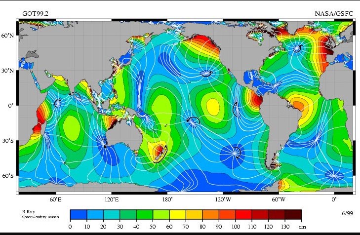 If you’d like to learn more about amphidromic areas and why they occur see the Southampton University website for an article called, “Amphidromic Points: tidal spiders in a real World“. This article is sure to satiate the curiosity of the most geeky of geeks. And, I do say this with affection. My own husband has a passion for math and physics.