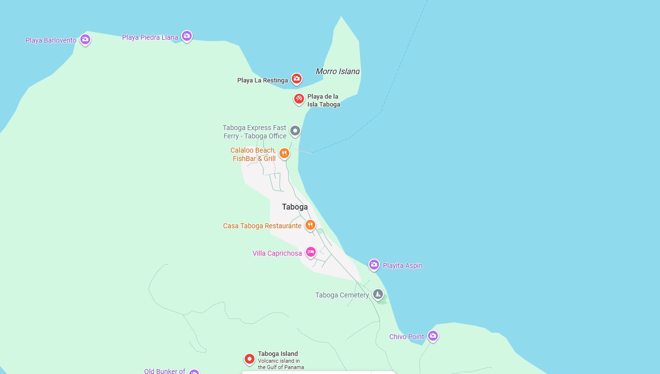 During high tide, people back up their beach chairs, and take their pineapple drinks elsewhere. Playa de la Isla Taboga becomes submerged; the spit of Morro Island becomes fully separated from Taboga Island.