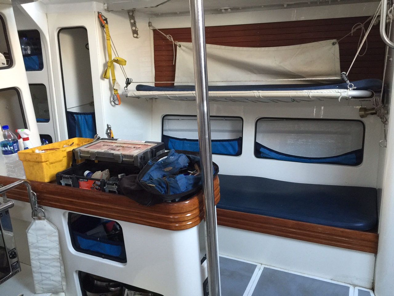 The onboard living space is as I expected, however. My husband sailed on this boat a couple of months ago. I went on board for the first time this evening.