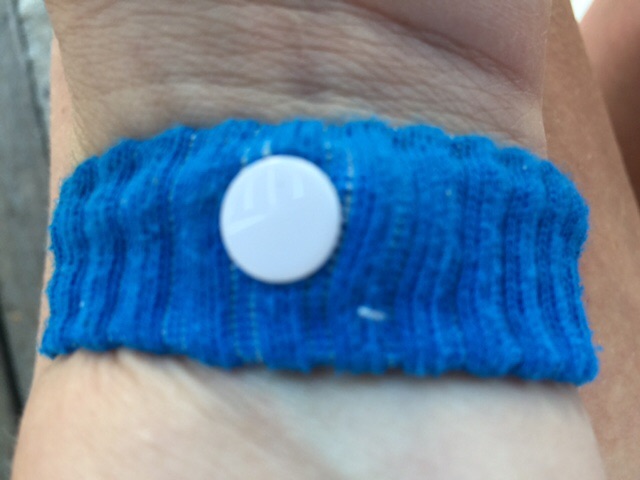 Pressure point bracelet for seasickness, gifted to me during Antigua Sailing Week 2015 by one of my crew mates.