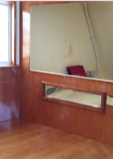 Inside, parts of our boat look gutted. For example, the television has been taken out, along with a outdated car stereo.