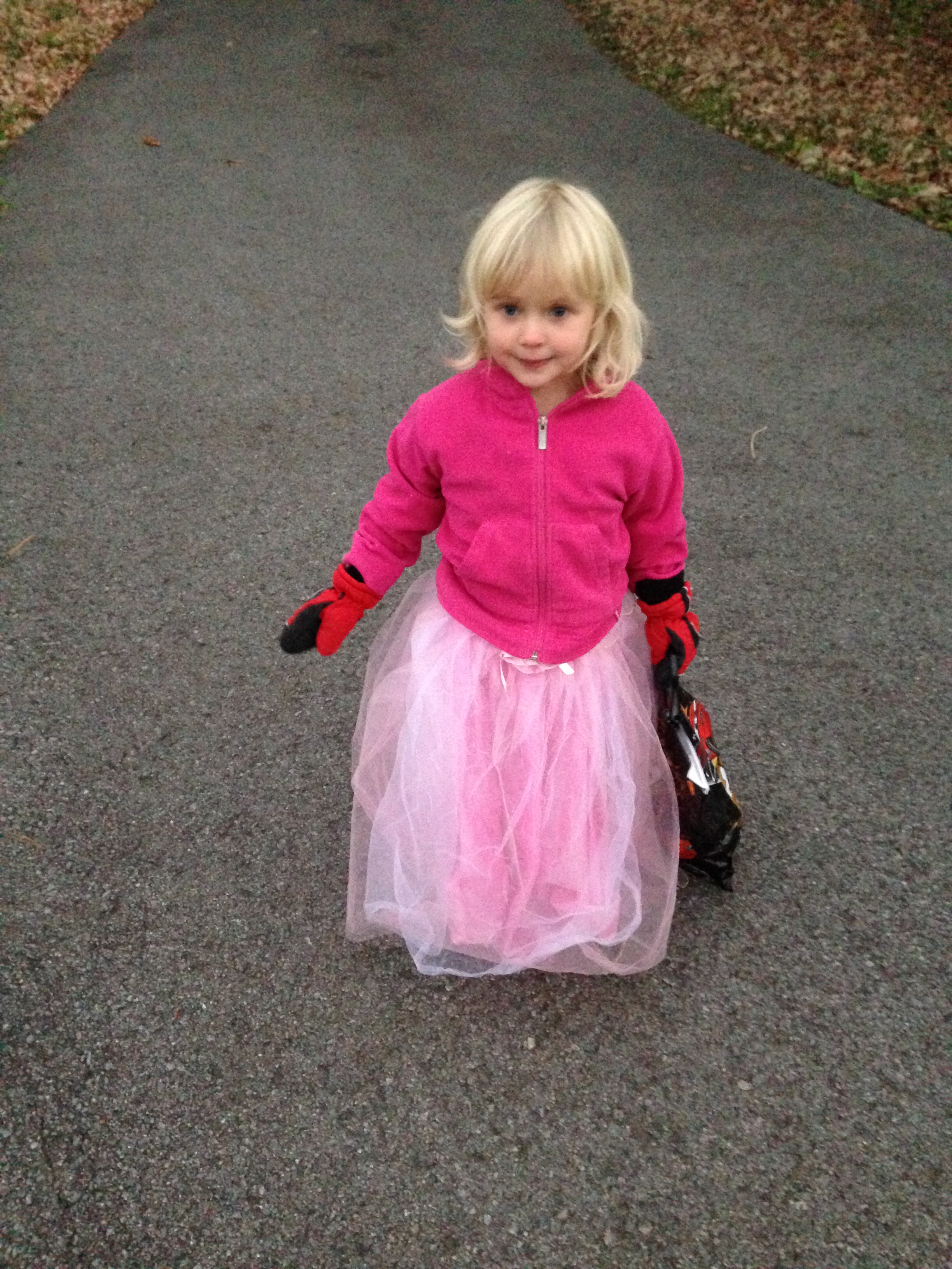 Halloween, for our family, is usually a 1-hour cold-weather dash. Here is a picture that I took last year of Karen at Halloween.