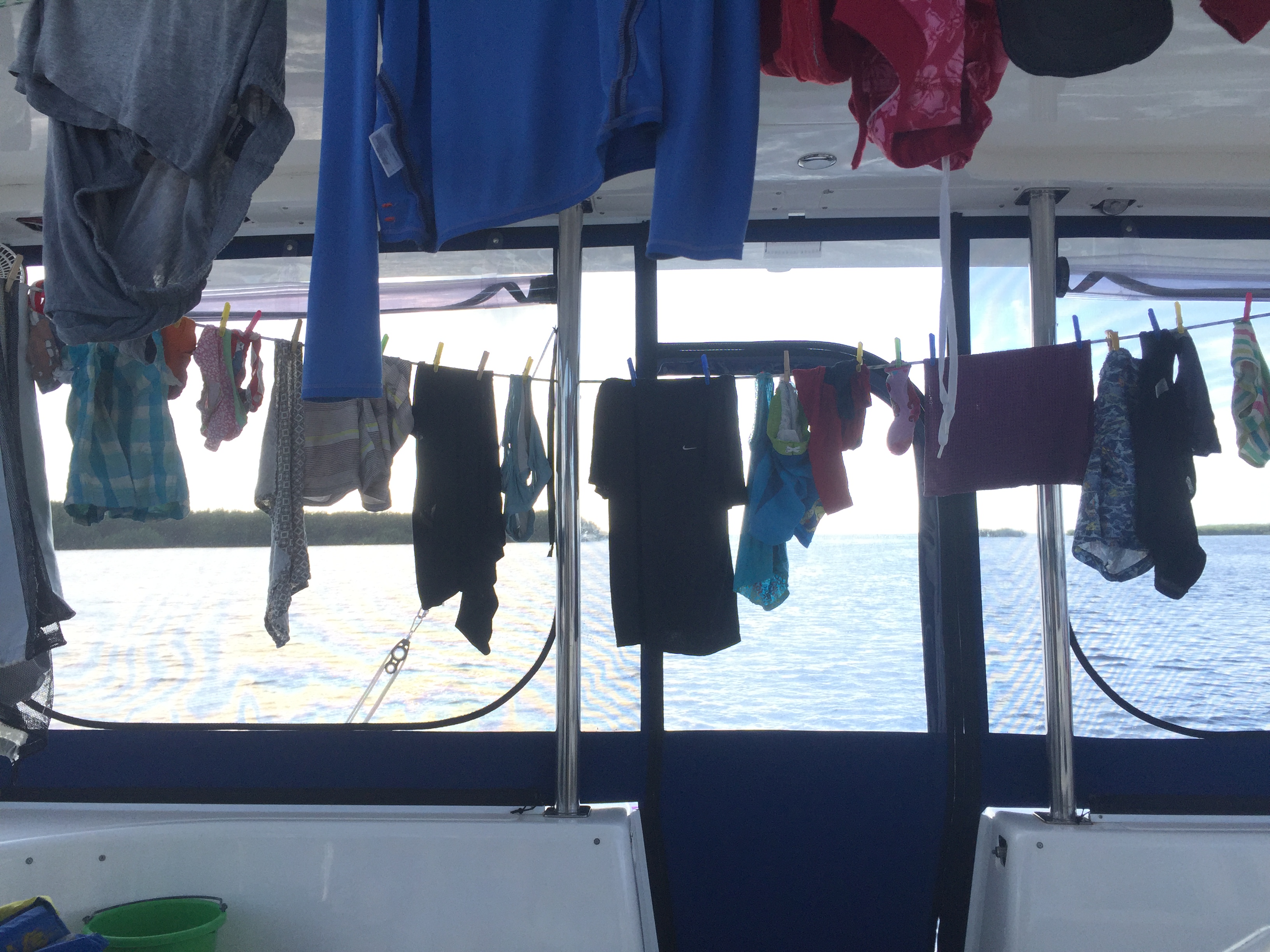 About four days’ worth of laundry generated by our family of six on the SV Aphrodite.