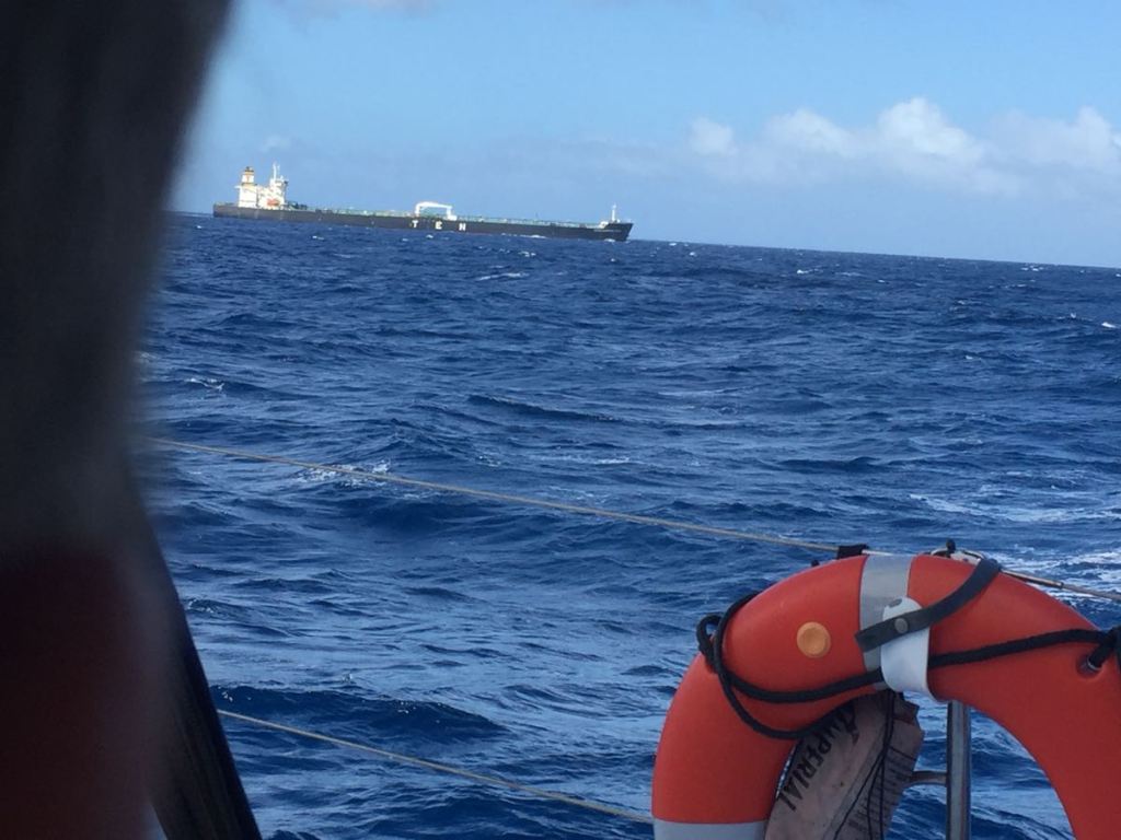 I will take a moment to describe how we got from calm, smooth seas to an atmosphere of awe and trepidation. On the first day, my husband sat at the helm, sleeping in bits and pieces. I baked bread. I even made a chocolate cake. We saw a tanker and altered course to pass behind it.
