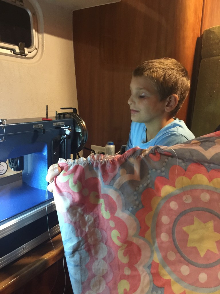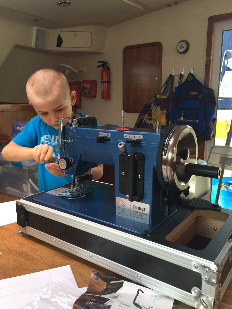 Our Sailrite sewing machine arrived earlier this week. Henry is interested in all things related to our Sailrite sewing machine. He spent at least two hours this week watching Youtube videos related to making dinghy chaps and using the machine. He doesn’t miss a beat, and gently corrected my technique as I sewed the pillow case, directing my hand to lift the presser foot.