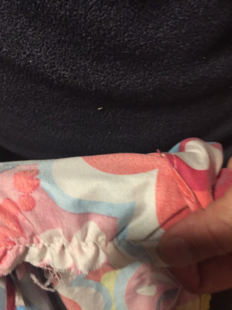 I survey my newly-made seem. “Mom, I think you’re a great sewer,” said Henry. Henry is 7 years old. The repair I made is shown above.