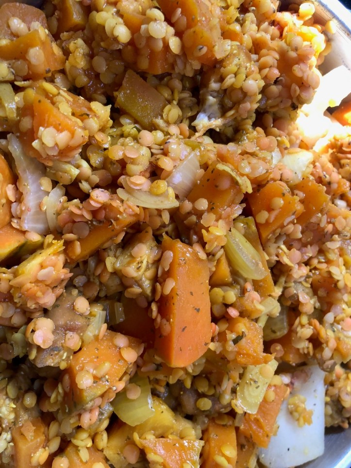 I let my food to cook for almost two hours before removing it from the water with my rope and a stick. I assumed that two hours would be sufficient to boil my vegetables and lentils. The vegetables were thoroughly cooked. The lentils were firm but edible. I suspect the spices had, more or less, washed out as part of the cooking process.
