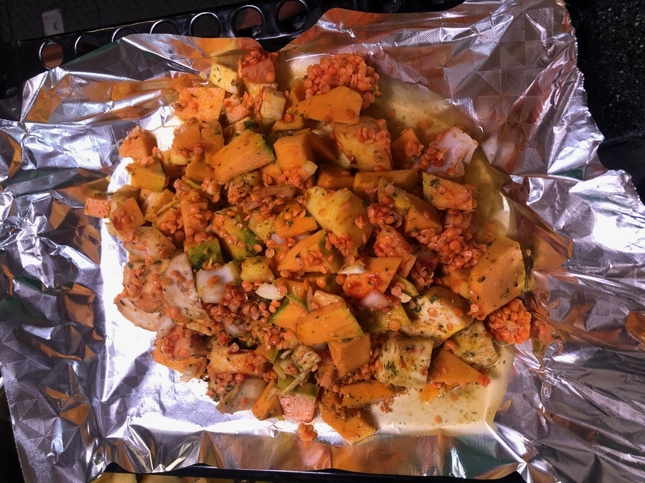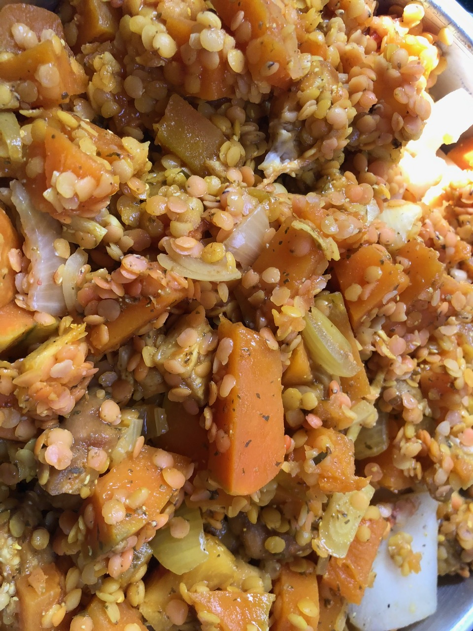 I let my food to cook for almost two hours before removing it from the water with my rope and a stick. I assumed that two hours would be sufficient to boil my vegetables and lentils. The vegetables were thoroughly cooked. The lentils were firm but edible. I suspect the spices had, more or less, washed out as part of the cooking process.