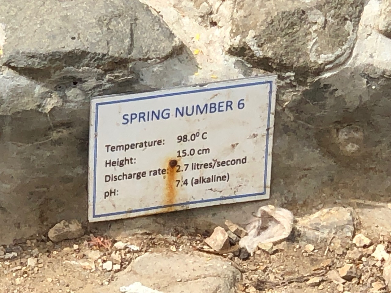 Today, the hot springs were dotted with random plastic wrappers and bits of garbage. I think the debris in the water must have arrived as part of the run off from the rain we’ve been having. I struggle with the idea that my food is being weighted down with some rags of various sizes. Goetz is quite sure that bacteria cannot survive these temperatures.