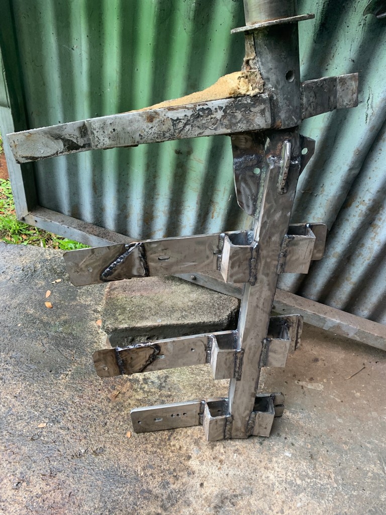 Here is a picture of Ritesh who welded a new rudder stock for our port rudder, along with a close-up of the rudder stock. We supplied some of the 1/4 inch stainless plate that you see. We had bought the plates in Savannah, Georgia as they had once been the stainless mounts of our old Fischer Panda generator.