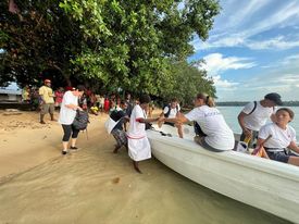 Local people travel long distances (sometimes hundreds of miles) by ‘banana boat’ to buy supplies, food, and fuel.
