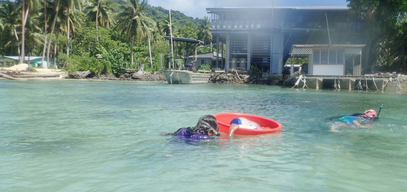 I swam further, two girls were collecting sea cucumbers and putting them in a large bowl that floated on the water. The bowl was tethered to one of the girls.