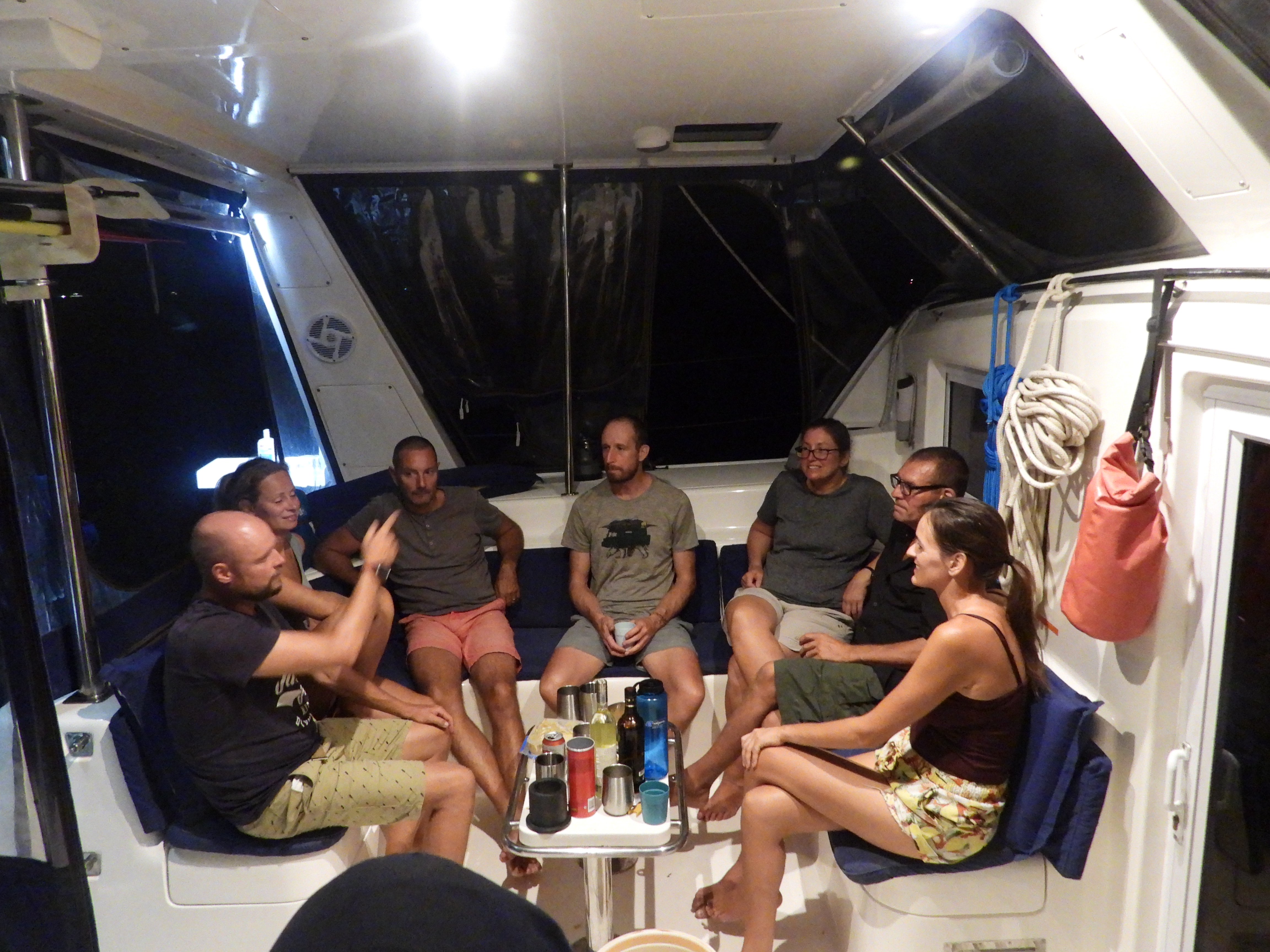 Sailors gather in our cockpit in Panama as we prepare for a Pacific Crossing.