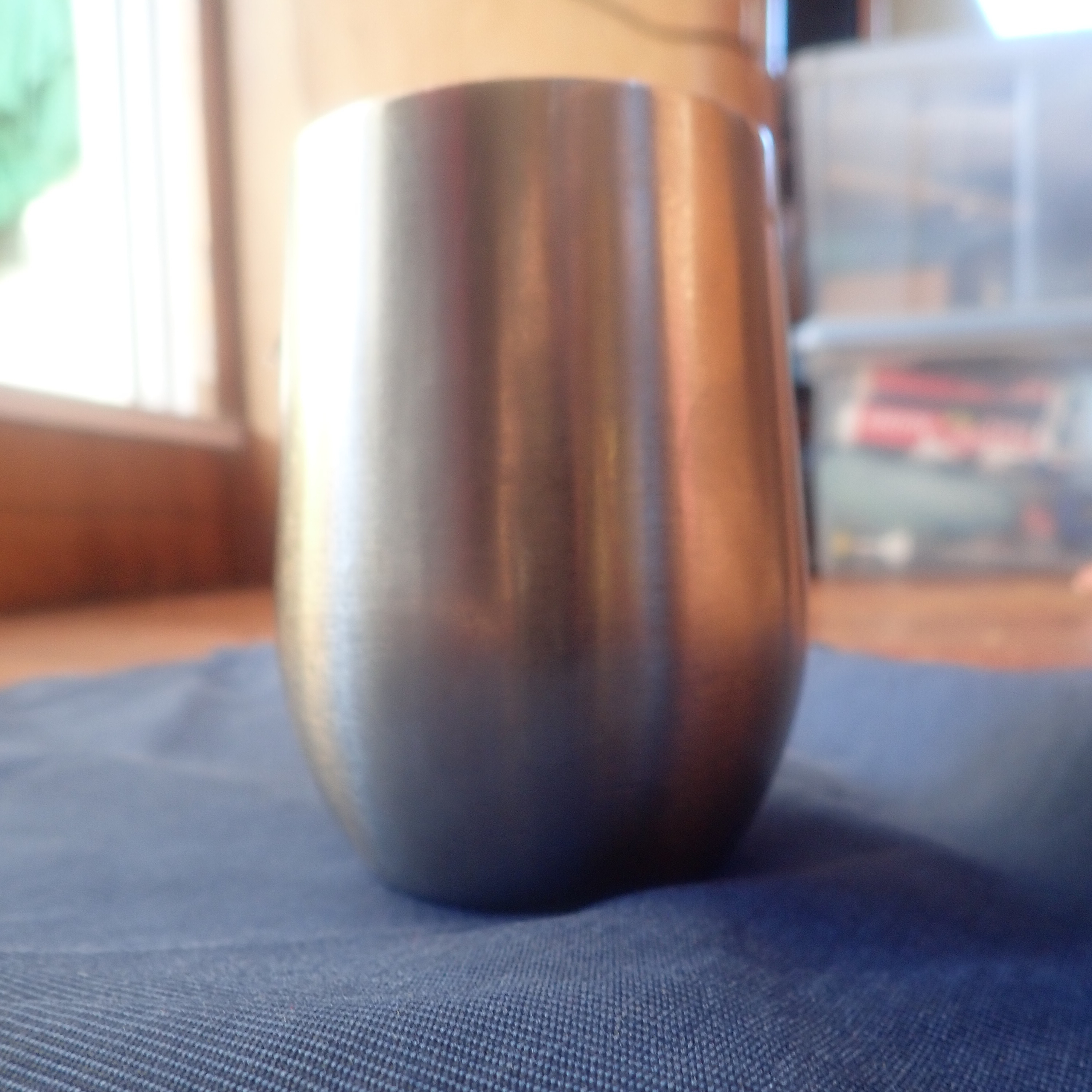 Refers to the only cup we have with a picture of a sailboat on it. It is plastic and double walled. If you are using this cup it is almost certain that there are dishes to be done. Everyone in our family seems to prefer using stainless steel cups, such as the bulbous cup.