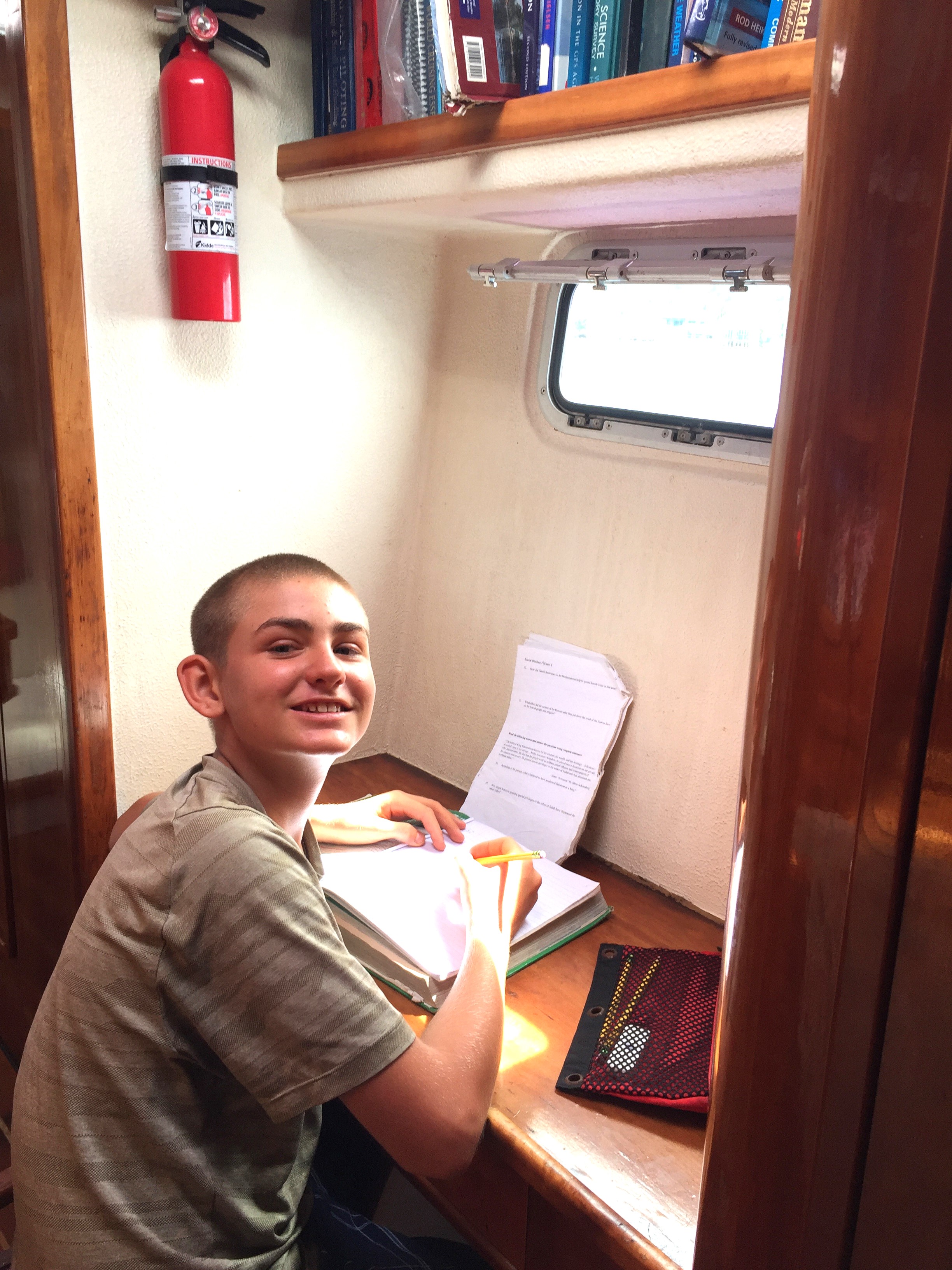 Our kids tend to focus on one subject at a time: math, geography, science, history or English. Our days are full on. Short of bad weather or the boat sinking, schooling is our priority. When we ask our kids about “school” it refers to the work they are doing on a specific subject, not a full suite of subjects.