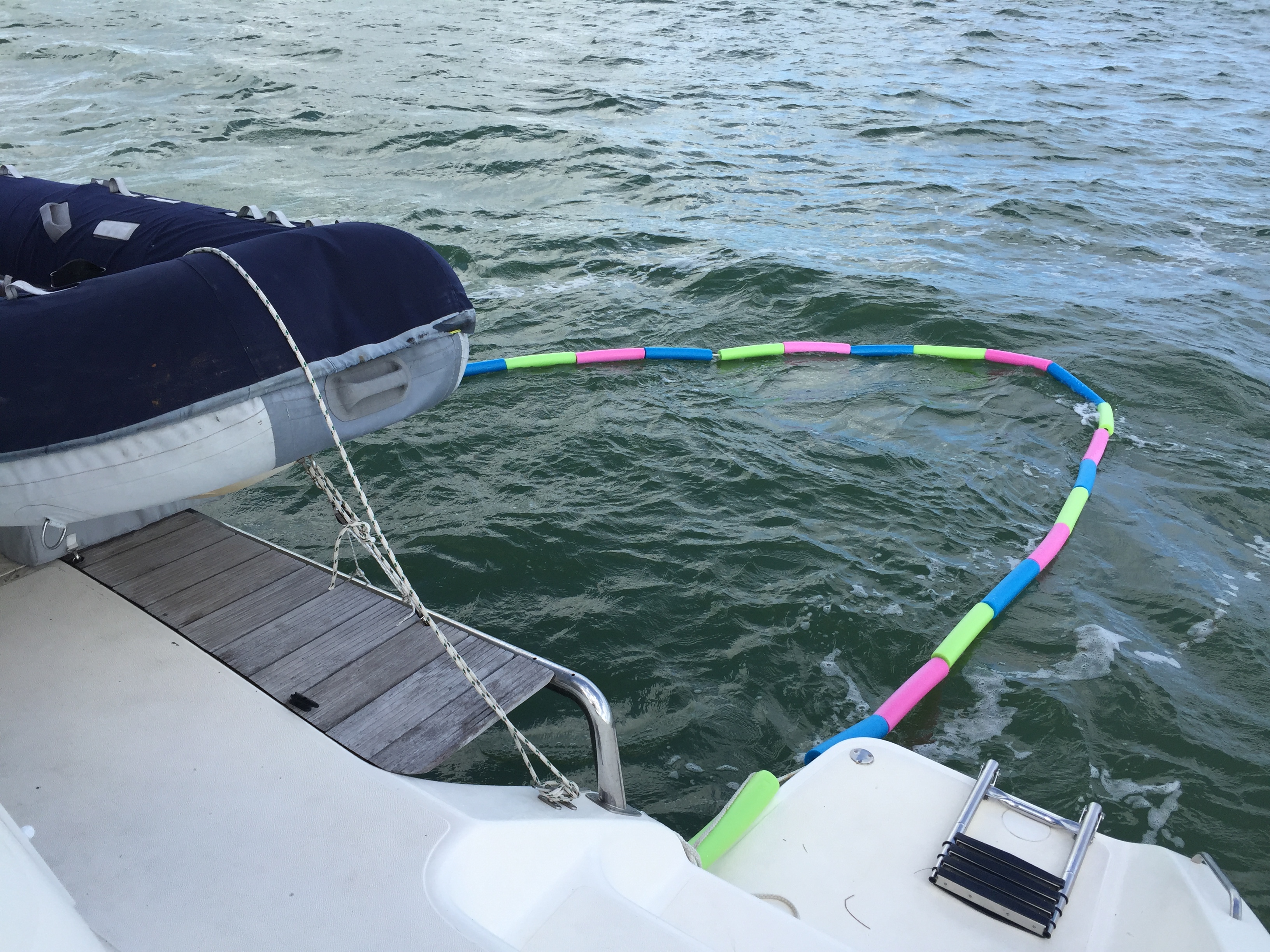 Refers to a swimming circle we originally made using pool noodles on a line. The row of floats helps other boaters to see us swimming in the water. The U-shape prevents us from getting dragged away from the hulls, even with a strong current. Other boaters sometimes hold onto the pool noodles while they are talking to us.
